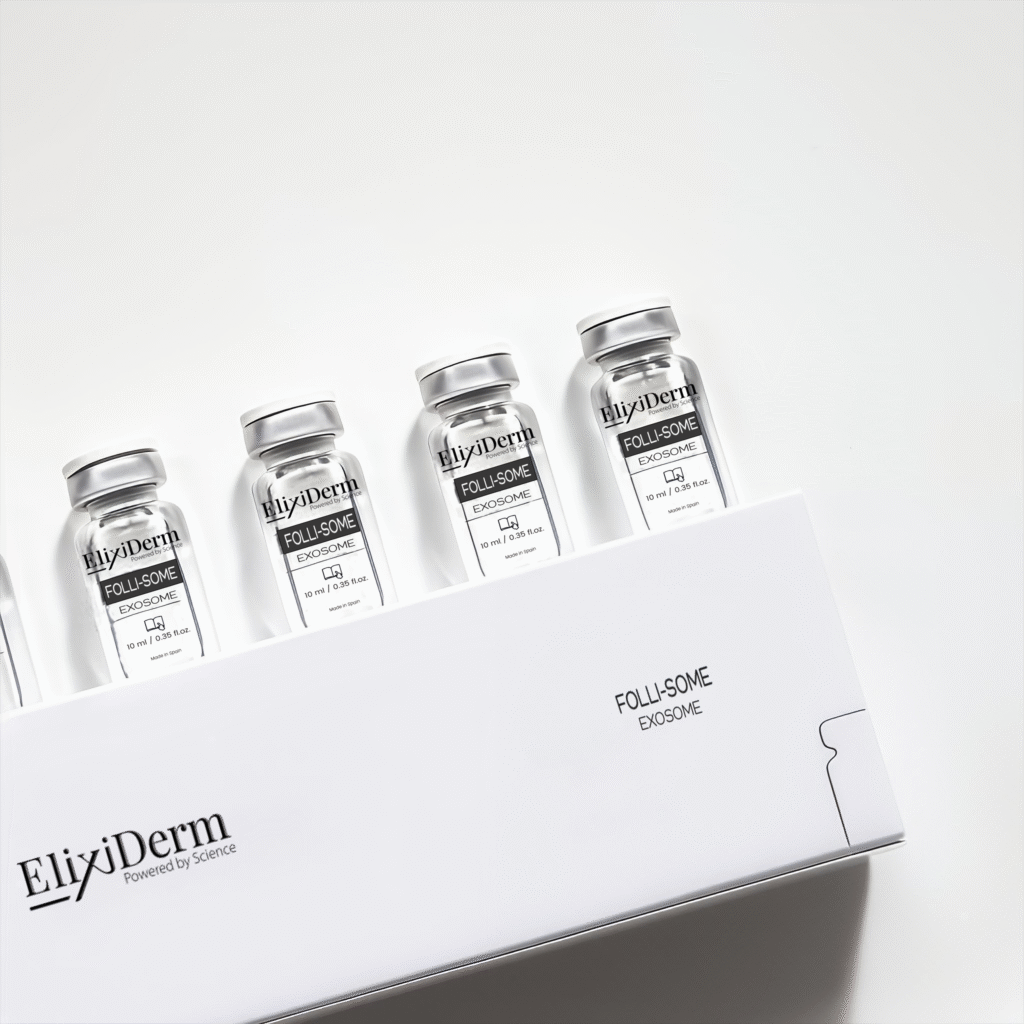 FOLLI-SOME delivers advanced exosome therapy to the scalp, addressing hair thinning and loss with a highly concentrated blend of over 40 billion exosomes/ml, probiotics, galactomyces, biotinoyl tripeptide-1, and phospholipids.